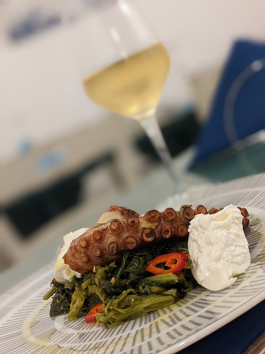 Super nice cute restaurant. Best Pulpo with nice red wine sauce. Best Swordfish panini with Pistachio. and we also had a super fresh salad with cod. we love it and the service was super kind. will keep that in our memories.