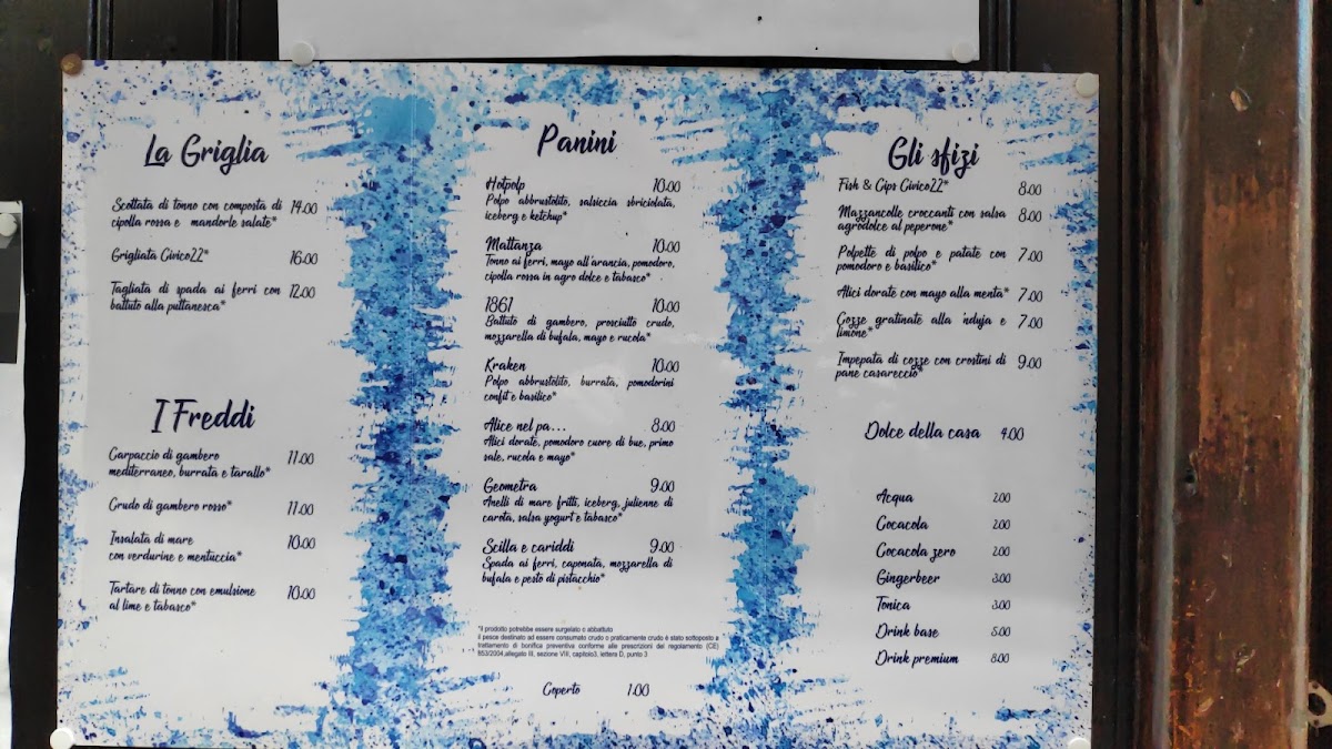 Welcome to Civico 22, a charming seafood haven nestled in the scenic Salita Fratelli Maruca, Lamezia Terme. This quaint restaurant prides itself on fresh, high-quality ingredients sourced from the sea. The menu offers a delightful range of dishes, perfectly crafted to showcase the essence of Italian seafood cuisine.